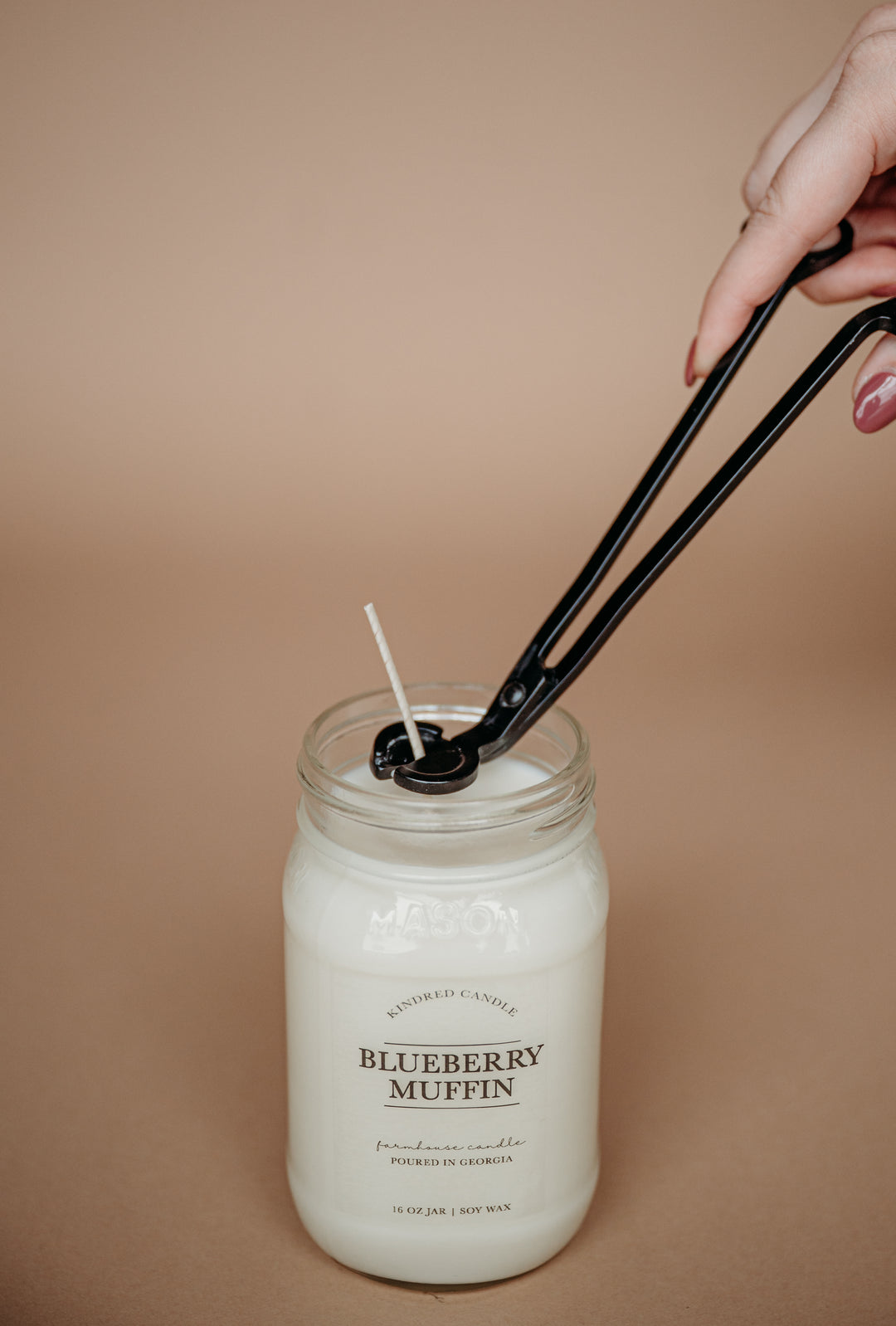 It's best to keep your wick trimmed to 1/4" in length. By doing so, you'll ensure that your Kindred Candle burns evenly and does not produce any soot. If your wick is too long, you'll notice your candle flickering rapidly.